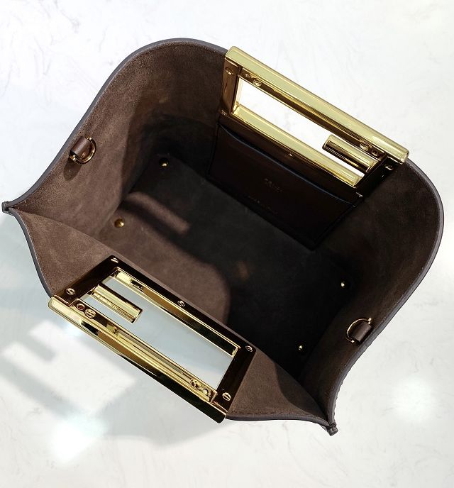Fendi original calfskin mini way handbag 8BS054 dark coffee