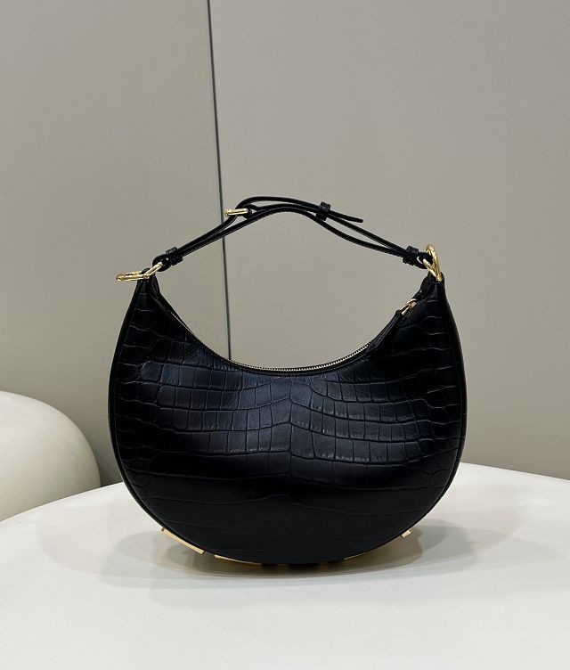 Fendi original crocodile calfskin small fendigraphy bag 8BR798 black